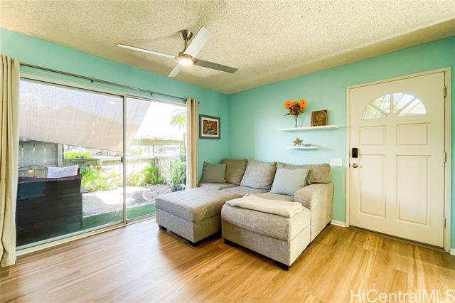 First Open House this Sunday, January 11th from 2-5pm. Welcome to a beautifully updated ground-floor home in the iconic Palm Villas community of Ewa Beach, offering an accessible entry point into homeownership. This move-in-ready residence features a kitchen renovated in 2023 and includes two assigned parking stalls. Live in the heart of a vibrant, master-planned community famous for its majestic canopy of royal palm trees, with premier amenities and an unbeatable central location just minutes from Ewa Town Center for shopping and dining, and easy access to Ewa Beach Park. Enjoy excellent connectivity to Fort Weaver Road and the H-1 Freeway for convenient commutes. This property combines modern comfort with the established charm and convenience of a highly sought-after neighborhood. Home can come furnished for the right offer.
