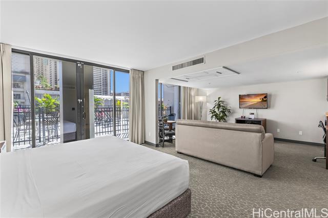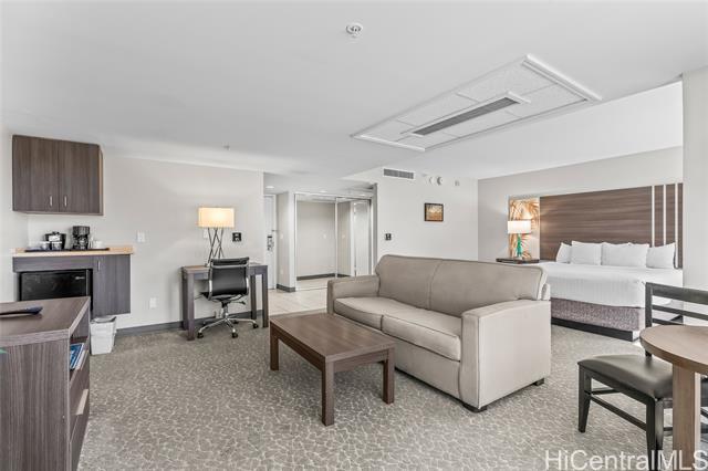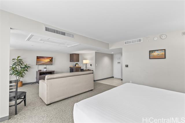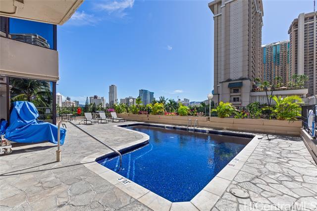 Palms at Waikiki #206 offers a rare opportunity to own a legal short-term rental in one of Waikiki’s premier condo-hotel destinations. This extra-large studio—approximately 550 sq. ft. of interior space—stands out with its generous layout and the added benefit of a dedicated parking stall, an uncommon advantage for STR properties in Waikiki. Situated on the 2nd floor (equivalent to the height of the 5th floor), this move-in-ready unit provides direct access from the lanai to the resort-style swimming pool and fitness room, creating a seamless indoor-outdoor experience for residents and guests. Perfect as an investment property or personal retreat, the unit features central air conditioning and is fully furnished for immediate use. All utilities are conveniently included in the maintenance fee, covering electricity, internet, hot water, sewer, and central AC—simplifying ownership and enhancing value. With its prime location across from Hilton Hawaiian Village and just moments from Waikiki Beach, shopping, dining, and island activities, this unit presents an exceptional blend of convenience, flexibility, and income potential in a highly desirable condo-hotel setting.