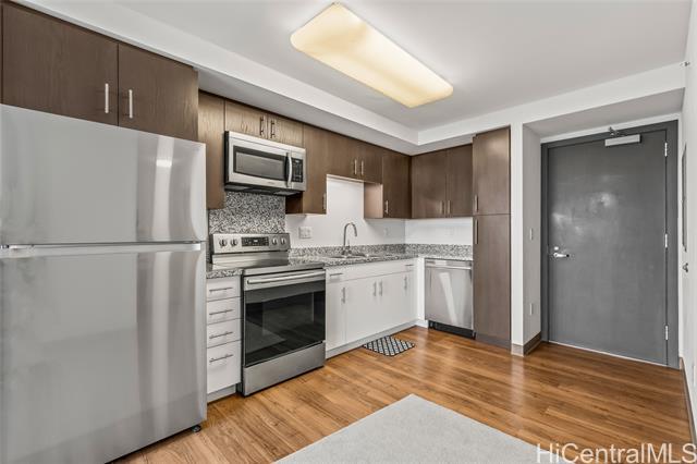 Experience contemporary island living in this beautifully designed condo located in the heart of Ward Village. This desirable Makai-facing residence at Ke Kilohana offers a dedicated parking stall along with sweeping ocean views that can be enjoyed from every main living space. Residents have access to an impressive collection of amenities, including spacious sky lanais, a karaoke suite, BBQ pavilions, a fully equipped fitness center, co-working areas, a theater room, and inviting indoor and outdoor lounge spaces. Situated in one of Honolulu’s most vibrant neighborhoods, you’ll love having Whole Foods, , and a wide variety of restaurants, boutiques, and entertainment just moments from your doorstep. Enjoy the convenience and energy of Kaka‘ako—Honolulu’s premier urban community.