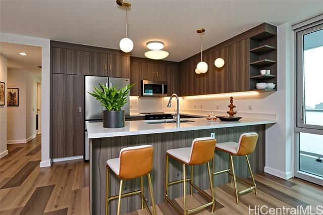 Come experience this brand new unit in the Park on Keeaumoku, Liona tower #3418. This most desired 3 bedroom, 2 bath corner unit features a spacious wrap around lanai. Enjoy stunning wrap around views of Honolulu (mountain, city and partial ocean). Inside, an open-concept floor plan with floor to ceiling windows fills the living spaces with natural light. The kitchen offers all brand new appliances, quartz countertops, and designer fixtures. As part of Honolulu's newest lifestyle destination, residents enjoy resort-style amenities (infinity pool, spa, movie theater, BBQ pavilion, etc.), secure entry, pet friendly, and an unbeatable location - just minutes from Ala Moana Center, Waikiki, and some of island's best dining, shopping and entertainment.