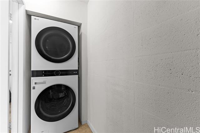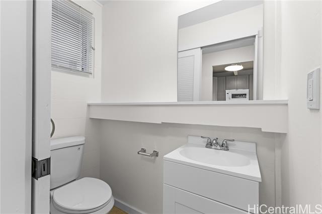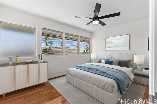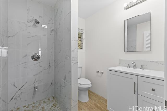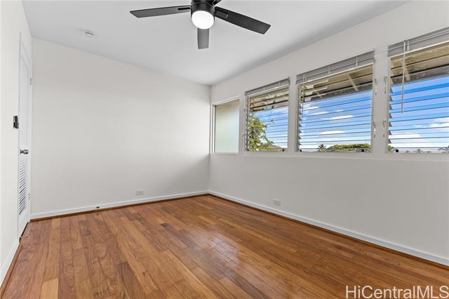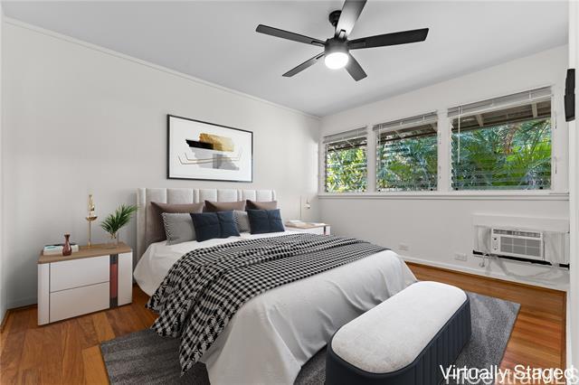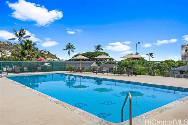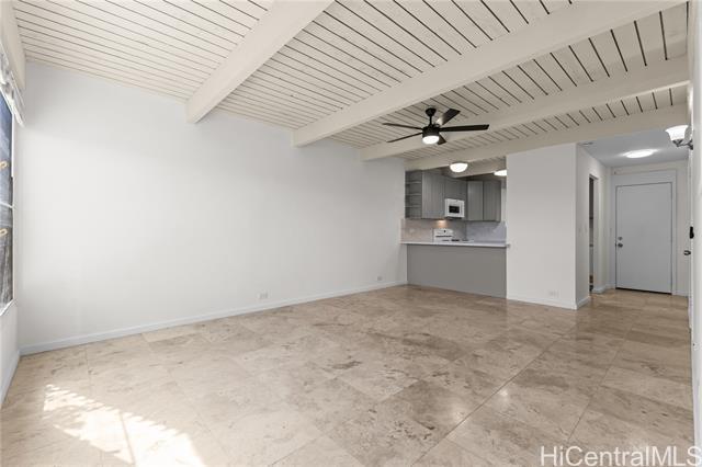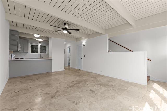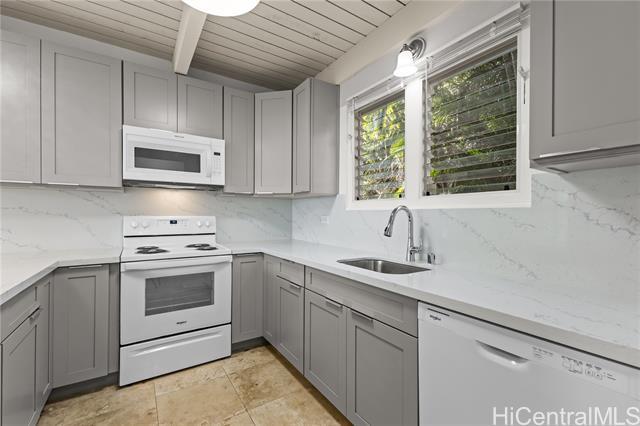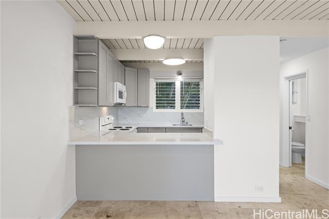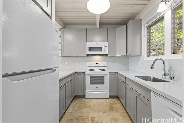 A remodeled 2-bedroom, 1.5-bath residence in Waialae Gardens with qualify finishings and elevated setting for a slight ocean view. The remodeled kitchen features quartz countertops, hardwood cabinets, and new appliances. The baths are also remodeled with a tiled shower and new vanity cabinets and sinks. The original jalousie windows were replaced with vinyl louvers allowing the same cross-ventilation through out the home. Features tile floors downstairs and in baths and engineered wood flooring in bedrooms. Includes a new LG stacked washer and dryer. Comes with 1 dedicated parking stall and street parking nearby. This pet friendly community is minutes from the vibrant shops and restaurants of Kahala Mall with easy freeway access.