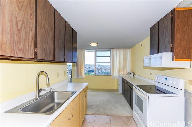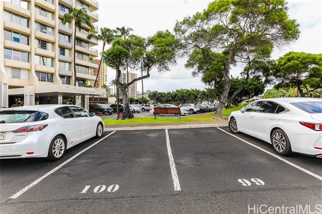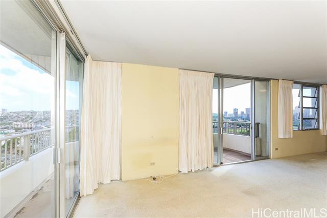 A two bedroom, two bath unit featuring a spectacular wrap-around lanai with stunning mountain, city, and Diamond Head views. The unit is in mostly original condition, offering an open canvas ready for fresh upgrade ideas. The property is to be sold "AS IS." Two side by side open parking stalls. Property also features a beautiful pool area, secured building and elevators, manager on site M-F, and a great maintenance staff as well. Convenient location is within minutes to University of Hawaii Manoa, Chaminade University, Market City shopping and dining, bus lines, freeway access, and Waikiki. $50K special assessment has been paid by seller.