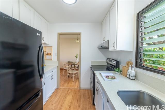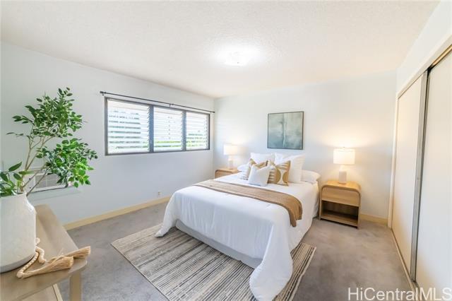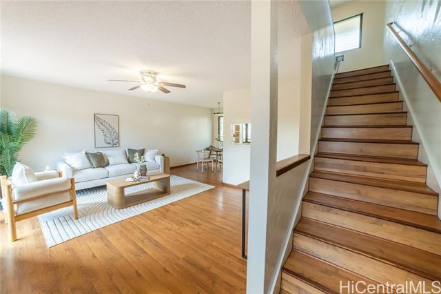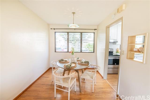 Welcome home to Tropicana Village West and this well-maintained, recently renovated and move-in ready 2-bedroom, 1.5-bath townhome in the heart of Aiea. This split-level home offers an open living area with great natural light, a functional kitchen w/ stainless steel appliances, quartz counters, newer cabinets, two conveniently located side-by-side parking stalls nearby and a private covered lanai perfect for relaxing or enjoying the breeze. The property boasts 14 owned PV panels for energy efficiency and savings. Both upstairs bedrooms provide comfortable space and flexibility for daily living, and the overall layout feels bright and welcoming. Conveniently located within close proximity of Pearlridge Shopping Center, restaurants, schools, Pearl Harbor, Pearl at Kalauao Golf Course, bus lines, and freeway access. The community is well cared for with landscaped grounds, a pool and a peaceful atmosphere—ideal for home buyers, down-sizers, or investors. Schedule your showing today!