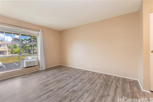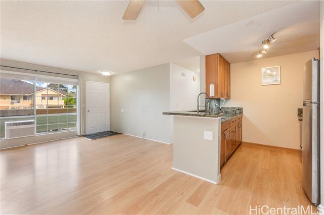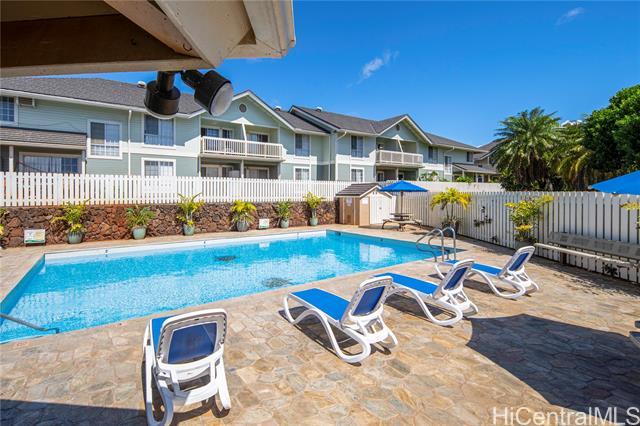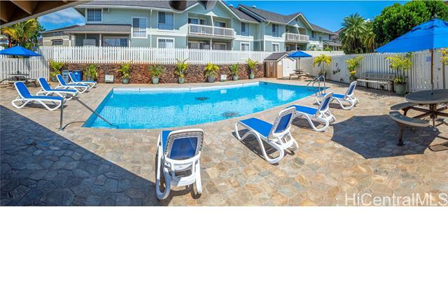 Great starter home and a wonderful opportunity for a first-time homebuyer. This charming two-bedroom townhome features an open kitchen and open-concept layout that creates a bright, comfortable living space. The primary bedroom includes a convenient half bath, while a full bathroom serves the home. Good storage space and AC to keep you cool. Assigned parking stall included for added convenience. Located in The Villages at Waipio, residents can enjoy the playground, clubhouse, pool and lounging area, car wash area and a pet-friendly environment. Centrally situated in the vibrant Waipio Gentry neighborhood, you’ll appreciate the easy access to everything you need—Central Oahu Regional Park, Costco, Foodland, Waikele Outlets, Lowe’s, OfficeMax, Petco, and more, all within a short commute. Schedule your private showing today and make this townhome your own! Some photos have been virtually staged.