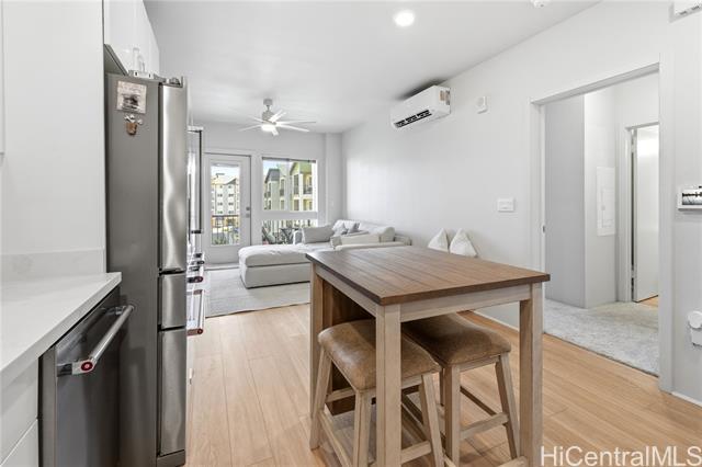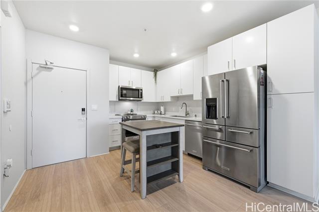 A comfortable 1-bedroom is now available in Nahele at Hoopili. This home features a spacious open kitchen with high-end stainless steel appliances, deep-mount sink, luxury vinyl plank floors, and an in-unit washer and dryer. The building includes elevator access, trash chute, and secured lobby with key fob entry. Nahele is part of a 25-year master-planned community designed to offer new parks, dog parks, schools, community pools, rec center, basketball and pickle ball park, outdoor work out parks, small and large businesses, easy freeway access, convenient rail access, and more. Don’t wait- a 1 bedroom listing in this community is rare.
