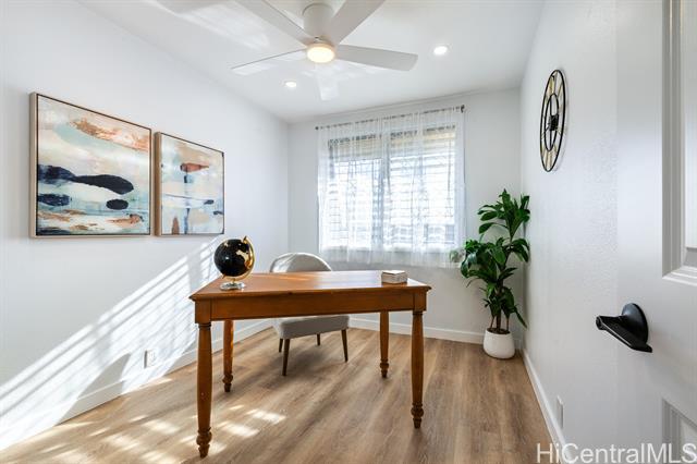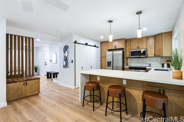 Beautifully renovated and turnkey, this spacious 4-bedroom, 2.5-bath Aiea townhome offers just under 1,500 square feet of thoughtfully designed living space, perfect for growing families. The home features a tasteful modern renovation, all new appliances, and a secure covered patio area ideal for relaxing or entertaining. Residents enjoy community amenities including a playground for children, two swimming pools, and ample guest parking. Conveniently located within walking distance to Pearlridge Center, just 10 minutes to the airport, and close to shopping, dining, and major freeway access, this move-in-ready home offers exceptional value in today’s market and combines comfort, style, and unbeatable convenience.