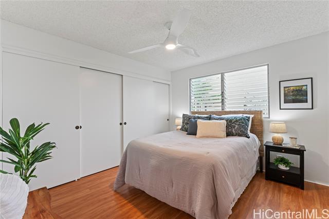 Rarely available one-bedroom condo in Koolau Vista, ready and waiting for its new owner. This well-maintained unit features vinyl flooring throughout, a washer and dryer conveniently located in the unit, and a window A/C in the living room for added comfort. The bright and functional layout offers an easy, low-maintenance lifestyle. The condo also includes one covered parking stall and a dedicated storage unit, adding valuable convenience. Centrally located within the community, this is a wonderful opportunity for a first-time buyer, investor, or anyone looking to make this inviting space their own.