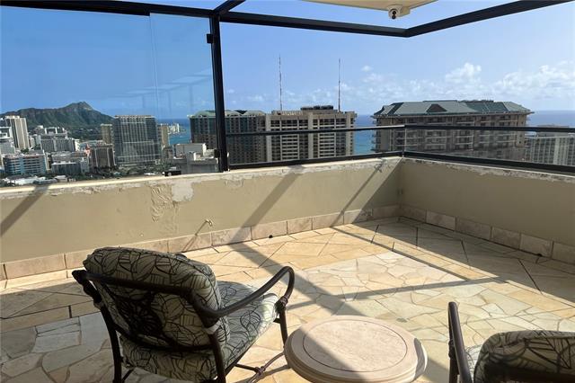 Blight Corner, Fully furnished 2 bedroom, 2 bath with a parking. The Windsor has great resort amenities include exercise room, pool, Jacuzzi. , Sky terrace offers best 360 degree ocean and city views in Honolulu. Short walk to Hilton Waikiki Lagoon Beach, Ala Moana Park, Ala Moana Shopping Center... Perfect location and environment to stay longer in Paradise. including parking, Bosh W/D, Hi-speed internet, Cable TV. 8 guest parkings, EV charger in the building. Additional parking at $100/mo and Storage unit at $35/mo are available from AOAO.