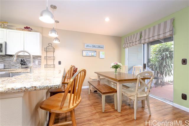 This elegantly maintained 3-bedroom, 2.5-bath townhome offers refined living with a 2-car garage, additional guest parking, and a private fenced yard that provides both comfort and privacy. The interior features a sophisticated open-concept design filled with natural light, seamlessly connecting the living and dining areas—ideal for both relaxed daily living and stylish entertaining. The primary suite serves as a private retreat, complete with a beautifully updated ensuite bathroom and an expansive walk-in closet. Two additional bedrooms offer flexible use as guest accommodations or a home office. Ideally located near Waikele Premium Outlets, Safeway, and Lowe’s, with convenient access to the H1 freeway for effortless travel to military bases or downtown Honolulu.