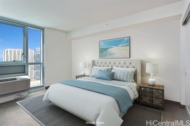 RARE 3 PARKING STALLS comes with this beautiful high floor residence in Award Winning Ward Village's Planned Community incl. "Ke Kilohana" or 988 Halekauwila (official name) completed in 2019. Freshly painted, well-maintained & in move-in condition, this home also comes with a separate storage unit on the same floor as the parking. Enjoy floor to ceiling windows, 3 cooling A/C units, attractive two-toned cabinets, granite countertops, stainless steel appliances, plush carpet & luxury vinyl flooring. Outstanding amenities incl. 2 signature multi-level sky lanais with breathtaking ocean & mountain views. Other features incl. a movie theatre, music studio, fitness center, bike & surfboard storage, dog run, flex-work space, indoor & outdoor children’s play areas, storage lockers, sky deck with barbecue grills & multiple indoor & outdoor lounges. Convenience is right here as just a short distance away is a multitude of shops, restaurants, entertainment, a marina, Ala Moana Beach & Shopping Center & downtown Honolulu. BE CLOSE TO EVERYTHING at Ward Village, a 24/7 privately patrolled neighborhood which includes security cameras & roving patrols. Make this your Home Sweet Home!