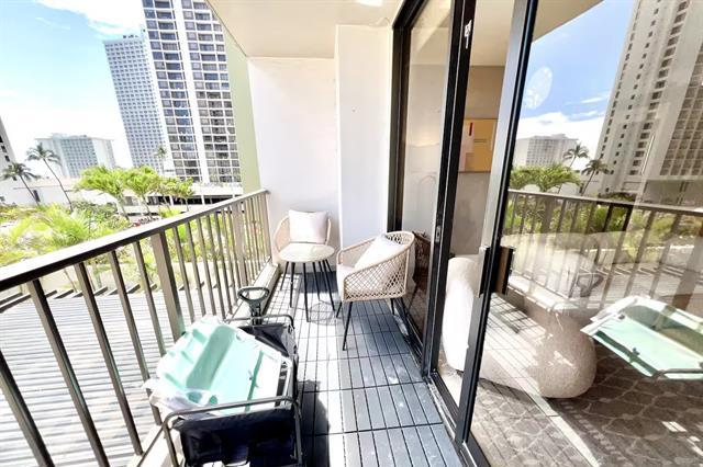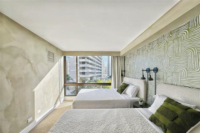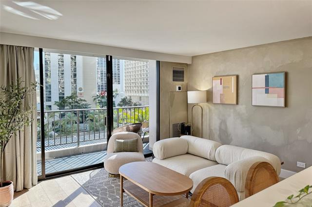 Meticulously curated and fully turn-key with upscale finishes, this professionally designed Waikiki Sunset 1-Bedroom offers a rare rental-ready opportunity with parking, a valid NUC, and legal short-term rental use, along with strong income potential. The fully furnished interior has been created as a minimalistic, ambient, and calming sanctuary, featuring custom hand-painted limewash walls, warm natural wood tones, and a restrained palette that evokes a serene, elevated atmosphere. The beautifully crafted custom kitchen is equipped with sleek built-in appliances, complemented by elegant built-ins throughout. The living space is anchored by an impressive 85-inch TV, enhancing both comfort and guest appeal. The well-planned layout includes two queen beds in the bedroom plus an optional full bed in the living area, maximizing functionality while maintaining a refined feel. City views are enjoyed from the unit, with a partial Diamond Head view available when angled. A true turn-key, design-driven, professionally renovated property in the heart of Waikiki at Waikiki Sunset.
