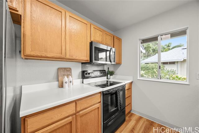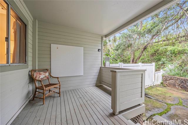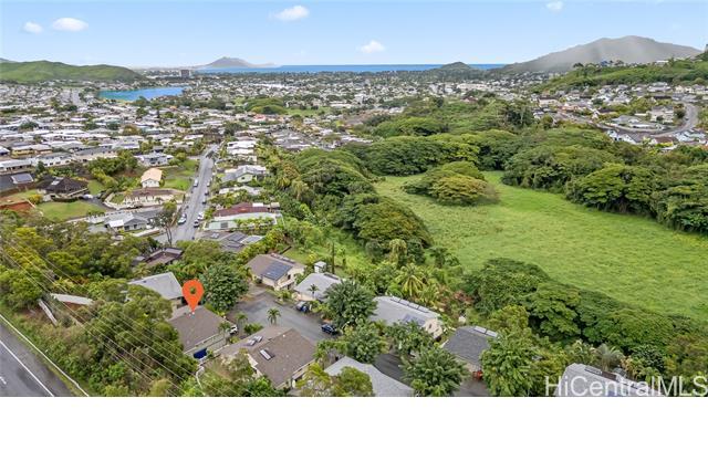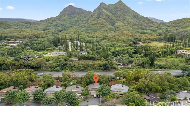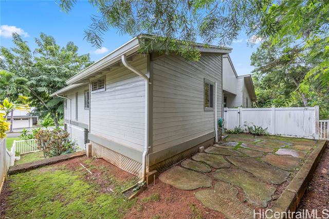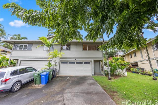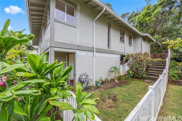 Tucked along the hillside of Keolu Hills, this inviting perimeter townhome at Kaopa Park Place offers a wonderful balance of privacy, functionality, and the relaxed Kailua lifestyle. Set in a quiet cul-de-sac and framed by natural greenery, the home enjoys a peaceful setting with a fully enclosed yard—ideal for entertaining, gardening, or unwinding. The interior features a practical layout with three bedrooms and two bathrooms, complemented by laminate flooring throughout. Multiple split air-conditioning systems and ceiling fans in every room provide year-round comfort. An enclosed two-car garage offers secure parking and convenience, while the generous space beneath the home presents excellent potential for expanded storage or creative use. Residents benefit from low monthly maintenance fees that include exterior upkeep and common area insurance, along with a pet-friendly community and full hurricane coverage. Just a short drive to Kailua Town’s beaches, dining, and shopping, this home offers easy access to parks, schools, and daily conveniences—capturing the comfort and ease of Windward living. Sold As Is.