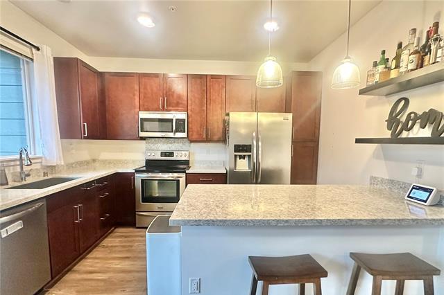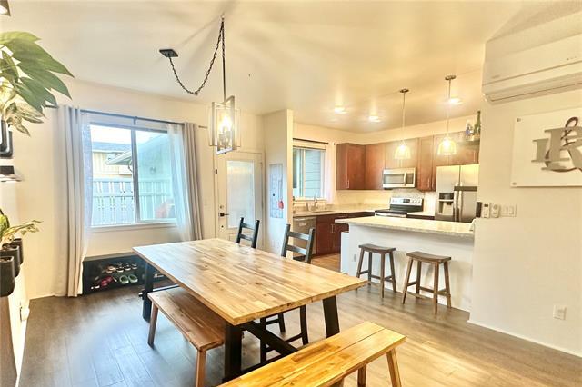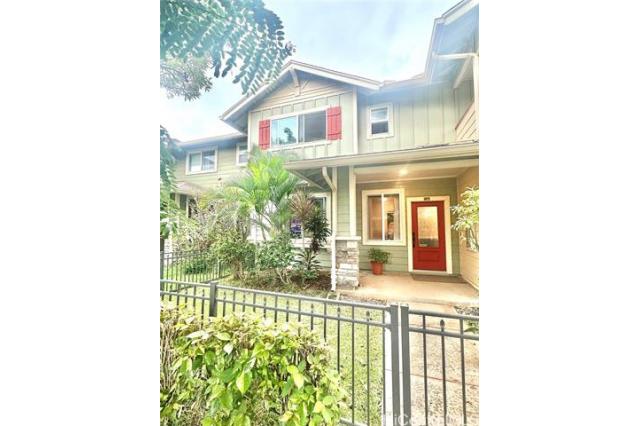 A really amazing opportunity to buy into desirable Haloa at Hoopili! These townhomes are located closer to the parks for the kids and pets. Haloa has a larger, more open floorplan feel with no units above or below and spacious open concept living, a large primary bedroom and bath with custom IKEA closet system, a welcoming front yard and buffering back yard. Modern touches for the new owner, such as open shelving, drop down knife drawer, and even a self-watering living wall. Additionally, this unit is well located close to guest stalls, street parking and an open turn around area, adding to the easy going open air feel of this home. Come see and compare - feels as spacious as a single family home!