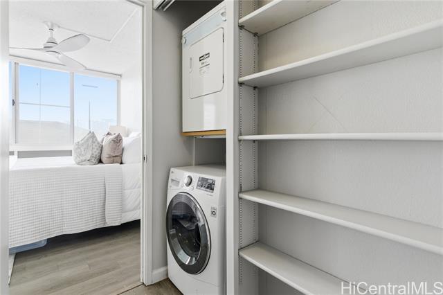 Welcome to corner end condo unit 2 bed and 1 bath located in desirable well located Kapiolani Gardens. Enjoy The Convenience Of In Unit Washer & Dryer, dedicated parking, open layout living room and kitchen. Maintenance Fee include electricity, hot water, sewer, internet and cable tv, offering excellent value and peace of mind. Enjoy the amenities and take advantage of central location near Waikiki, Ala Moana, University Of Hawaii, Shopping, Dining and Transit.