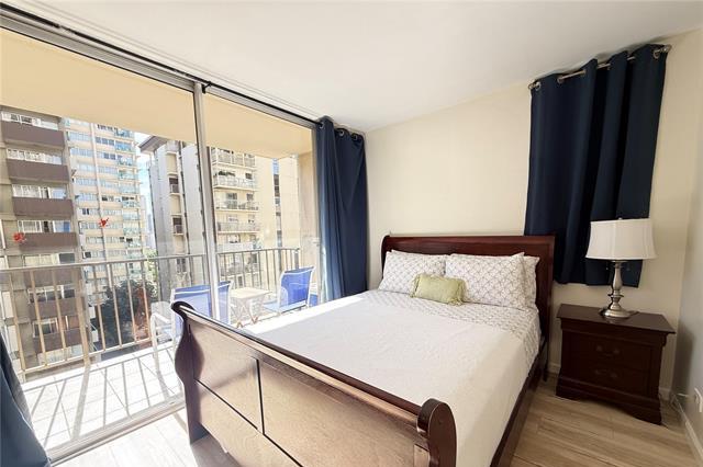 Welcome to Fairway Villa, perfectly situated in the heart of Waikiki and VA approved! Location truly means everything, and this fully remodeled corner unit checks all the boxes with 2 bedrooms, 2 bathrooms, and 2 covered parking stalls. Step out onto the spacious balcony and take in peaceful views of the Ala Wai Canal while enjoying cool mountain trade winds that keep the home comfortable year-round. Just one block from Target, International Market Place, and world-famous Waikiki Beach, you’ll be right in the center of it all. This move-in ready unit comes fully furnished and includes a newer refrigerator, newer washer and dryer, and a TV. The kitchen features sleek quartz countertops, while both bathrooms showcase elegant marble vanities. Luxury vinyl flooring flows throughout the home, and two sliding doors open to the lanai, creating seamless indoor-outdoor living with plenty of space to relax. With your HOA, enjoy 24/7 security, an on-site resident manager, and amazing rooftop amenities including a sparkling pool, lounge chairs, fire pit, BBQ areas, and multiple entertainment spaces. Don’t miss your chance to see this incredible opportunity—schedule your showing today!