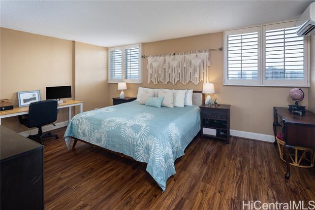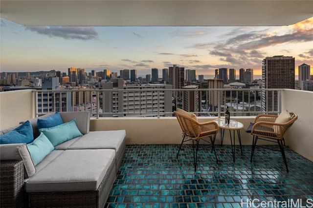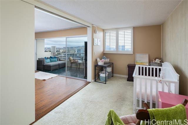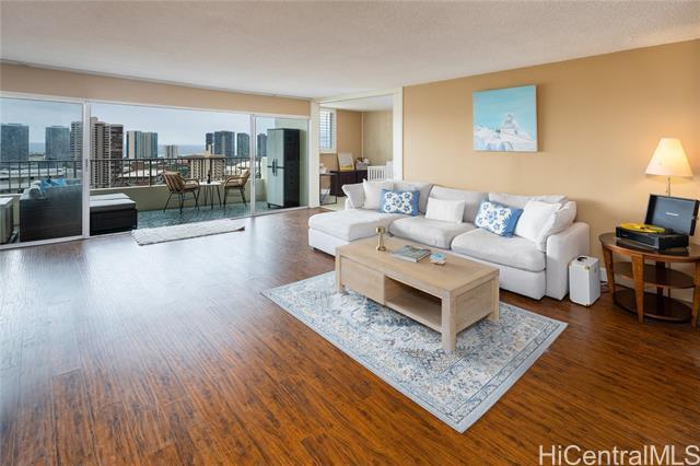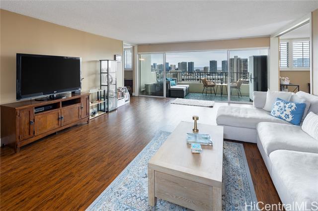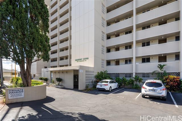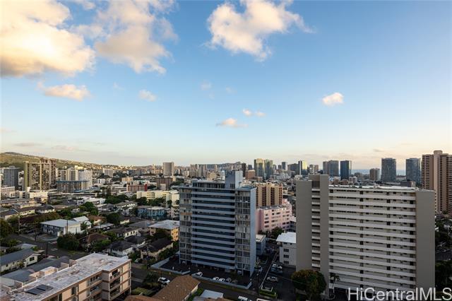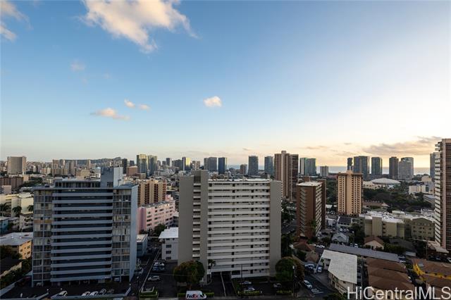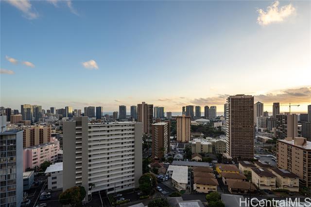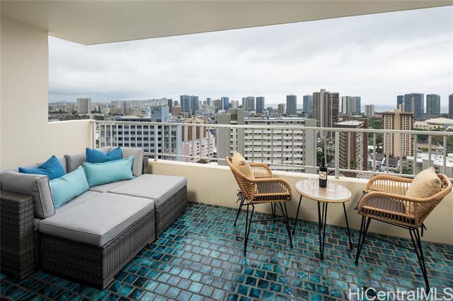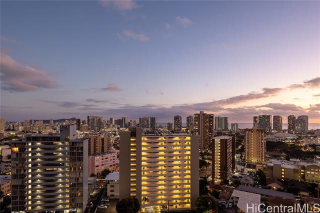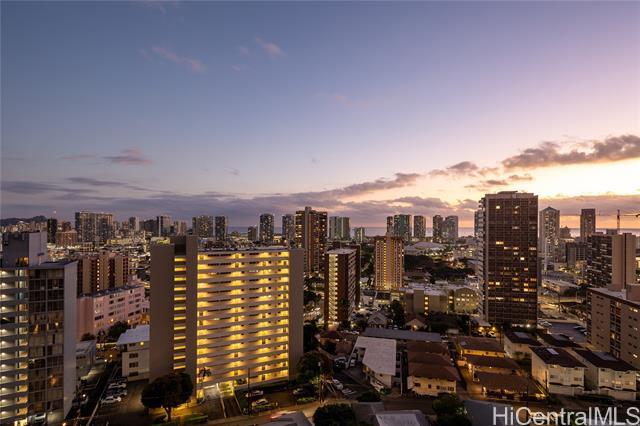 Rare chance to own a high-floor 3-bedroom unit in Prospect Tower Apts, a much-loved building at the top of Ward Ave. To illustrate the significance, there hasn’t been a 3-bedroom listed here since 2017, and only one other private sale in '21. Needless to say, it won’t last long! This unit boasts 1,440 sq ft of living space, with an extra half bath w/ washer/dryer! Beautiful wood floors in the living room lead to a large, breezy lanai with spectacular city, Diamond Head, ocean and fireworks views. Recently installed split A/C and updated primary bath vanity showcase improvements to a hidden gem. The large kitchen has such generously appointed cabinets & drawers rarely seen in condos. Conveniently located near the business district, Blaisdell Concert Hall & Arena, Ala Moana Shopping Center, Straub Medical Ctr & Punahou School, as well as shops and restaurants, the well-managed, secure building has high owner occupancy and 100% hurricane insurance! Amenities include pool, barbecue, gardens and an extra storage locker on the same floor! Low maintenance fees cover cable, hot water and sewer. There is one covered parking stall, option for a second rented stall and 8 guest parking spaces.