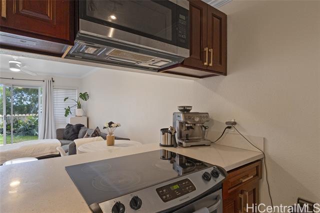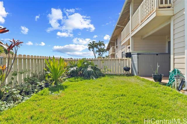 Welcome to your ideal retreat at Westview at Makakilo! This inviting ground unit boasts an expansive backyard that offers stunning views, perfect for relaxation or entertaining. The home features 2 bedrooms, 2 bathrooms, and comes with the convenience of 2 assigned parking spots. Enjoy a modern culinary expierence in the updated kitchen, which was thoughtfully renovated in 2018 with stylish wood cabinets, sleek quartz countertops and premium stainless steel appliances. The bathrooms were updated the same year and include elegant mosaic glass inlays. Additional highlights include a new full size front load washer and dryer and beautiful ceramic flooring throughout. Don't miss this opportunity make it yours!