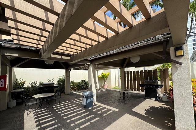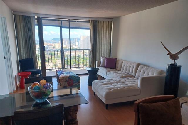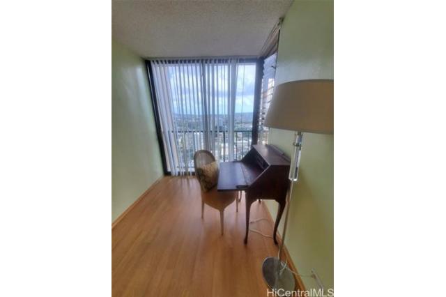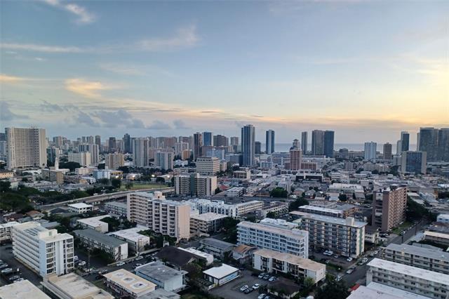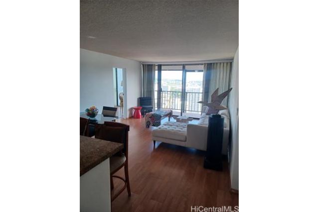 Located high floor corner or Wilder and Piikoi. Great Ocean and Mountain Views. Large 1 bedroom plus DEN 162 SQ FT use as an office or extra room total 767 sq ft. Secured building and parking in garage secured . Marble floors in kitchen and Bathroom. Pergo floors in other rooms. Resident Manager. Pool, Sauna, BBQ Area.Vacant and staged move right in. Close to freeways, stores, bus, and schools.Stack washer/Dryer in unit. New Stainless Fridge and Dishwasher. Pergo Floors. Window AC Unit.Lanai 101 sq ft. Plumbing completed in this unit. $3,000 vlosing credit to reduce interest rates to help the Buyer.