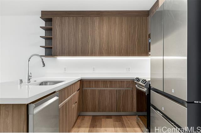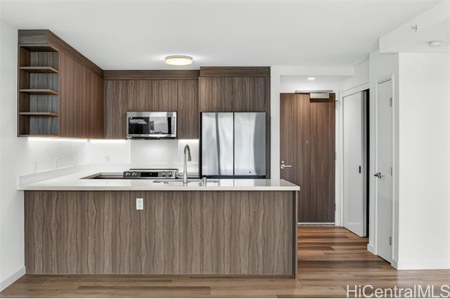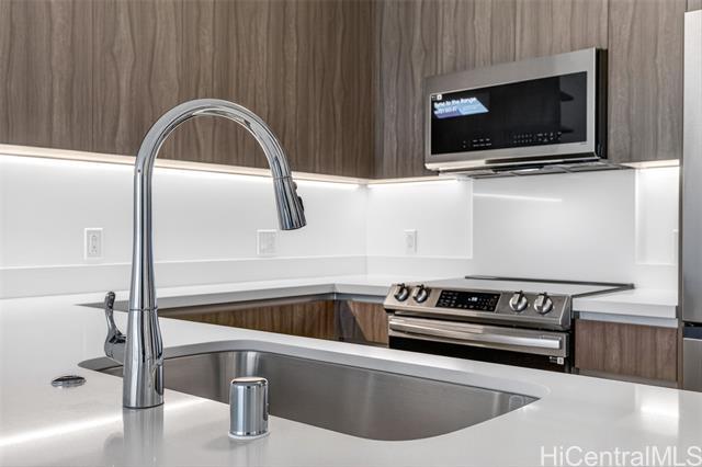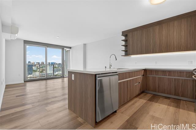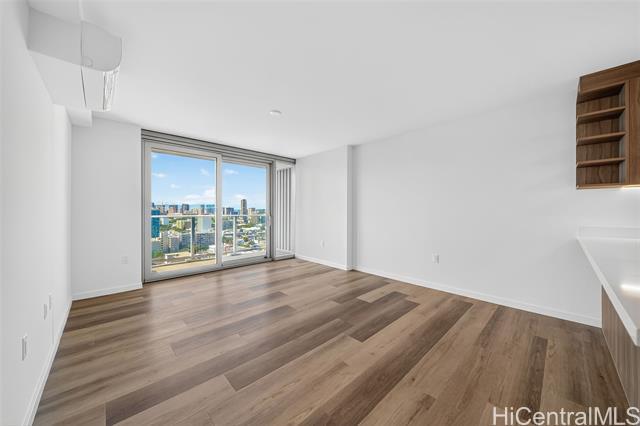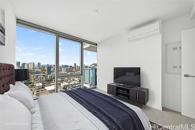 The Park on Keeaumoku is a thoughtfully designed new development that brings modern, comfortable living to the heart of a thriving community. Just minutes from Ala Moana Shopping Center, dining, and entertainment, everything you need is right outside your door. This one-bedroom residence offers the city views along with expansive floor-to-ceiling windows that fill the space with natural light. The open-concept layout features quartz countertops, luxury vinyl plank flooring in the living areas and kitchen, split AC in every room, and a private lanai to take in both city and ocean vistas. Enjoy resort-style living with exceptional amenities, including an infinity pool and spa, private BBQ pavilions, a movie theater, an indoor fitness center, yoga studio, sauna, and stylish clubrooms perfect for private gatherings