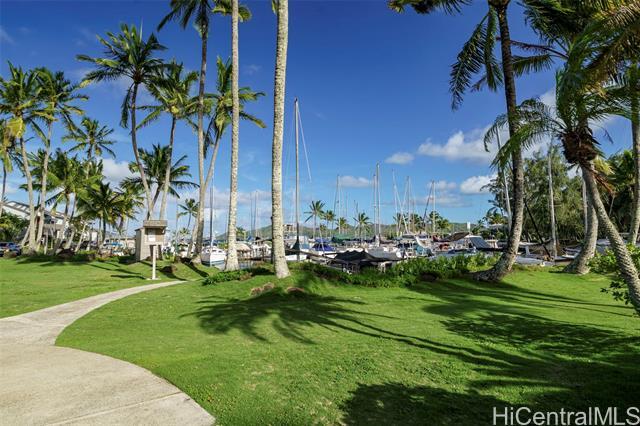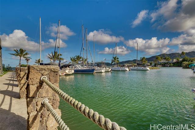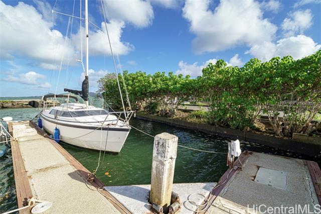 Makani Kai Marina is a Boater's Paradise! What an amazing price for a 3 bedroom end unit in a one of a kind ocean front community! Enter into your very spacious courtyard that allows for privacy and entertaining. There are numerous decks to capture the cool ocean breezes around Kaneohe Bay while enjoying the views and majestical mountains. An extra large boat slip is included with this townhouse- a perfect location at the end of the pier. The main living room has high vaulted ceilings and a new ceiling fan. The floor plan boasts a large primary suite downstairs with its own deck and an ensuite bathroom. Two additional bedrooms upstairs give you a a very private floor plan. Includes two covered parking stalls that are located very close to your entryway. All this and so much more! The lifestyle an ocean lover is seeking in the most magical setting in the Hawaiian islands.