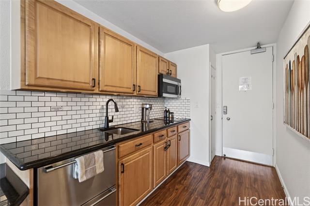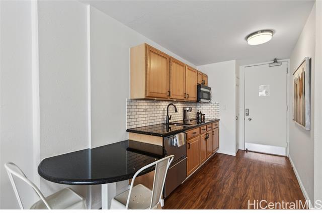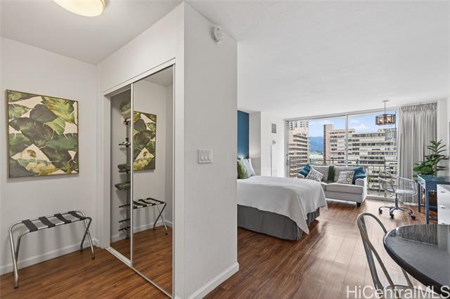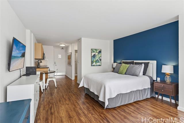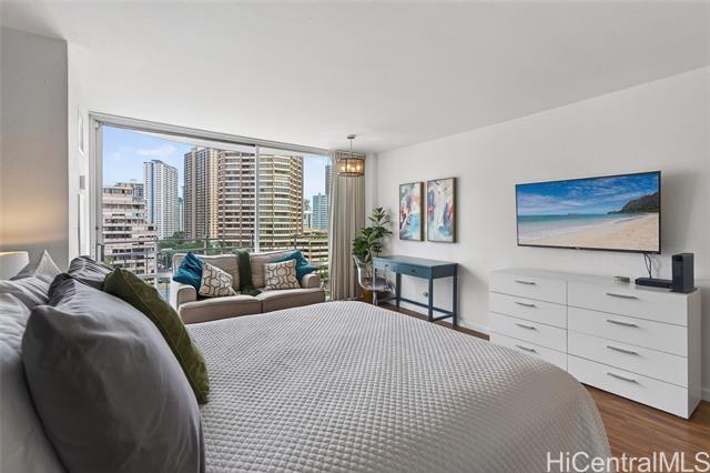 Beautifully renovated high-floor studio in the desirable Ilikai Marina with a city lights view that truly shines at night. This flexible property allows short-term rentals, making it ideal as a second home, investment, or full-time residence—use it when you’re here and rent it out when you’re not. The unit features a private lanai and a convenient kitchenette with refrigerator/freezer, two-burner stovetop, and microwave. The building offers three restaurants downstairs and is perfectly located near Ala Moana Mall, Hilton Hawaiian Village, the boat harbor, and the Convention Center for any event needs. On-site parking is available for a small fee daily, nightly, or monthly, and this is a rare opportunity for rental flexibility in a prime Waikiki/Ala Moana location. Please see and use all supplements when submitting any offers. Legal short-term rental with annual DPP registration. Monthly fees: HOA $800.78, Special Assessment $45.53, Cable $58.46 (Total $904.77) plus electric and A/C (typically between $50-$100 combined per month).
