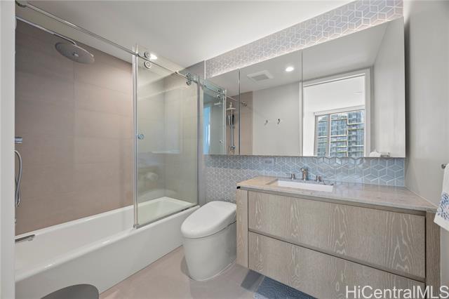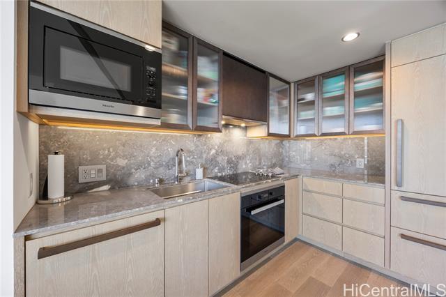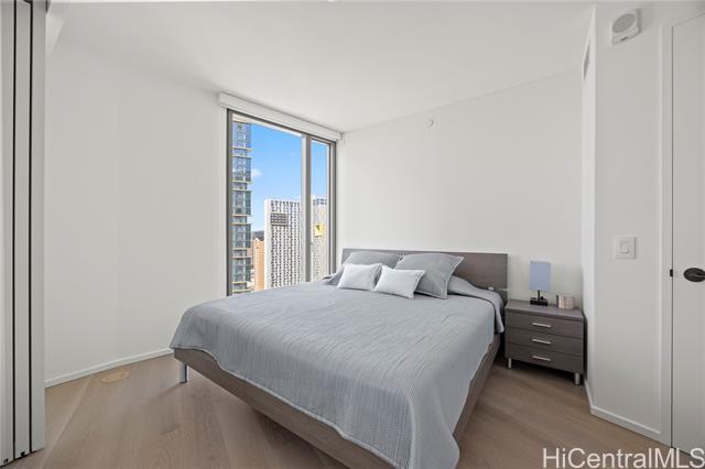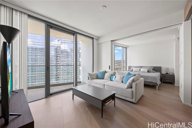 Experience luxurious living at Ward Village’s development, Koula. Breathtaking sunsets await you in this serene 1BR condo, with a sliding living room door, offering a unique and open layout. Appointed with Miele appliances that blend seamlessly with custom cabinetry, wood flooring, and stone palettes creating a beautiful and luxurious living space. Also is upgraded to the toilet to a TOTO Washlet. Enjoy the magnificent amenities deck featuring a beautiful Lap Pool, 2 Spas, Poolside Cabanas, BBQ, Children’s Playground, Fitness Center, Guest Suites, Dog Park, Grand Room, and numerous other areas to relax and entertain guests. Situated in the heart of Ward Village, adjacent to Victoria Ward Park, shop at the local farmers market or WholeFoods around the corner, or dine at one of the unique and well-known restaurants in the neighborhood. Ala Moana Beach Park and Ala Moana Shopping Mall are all in close proximity.