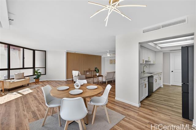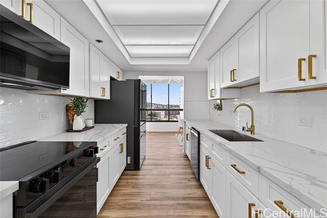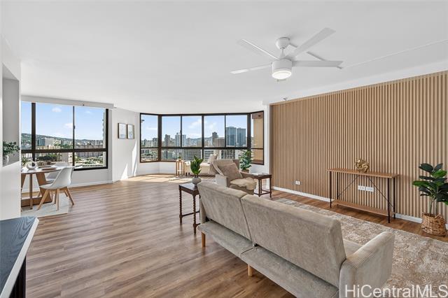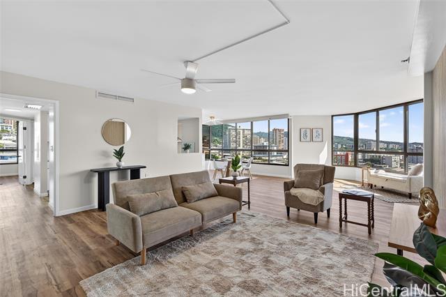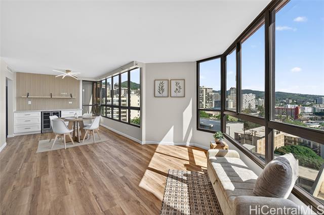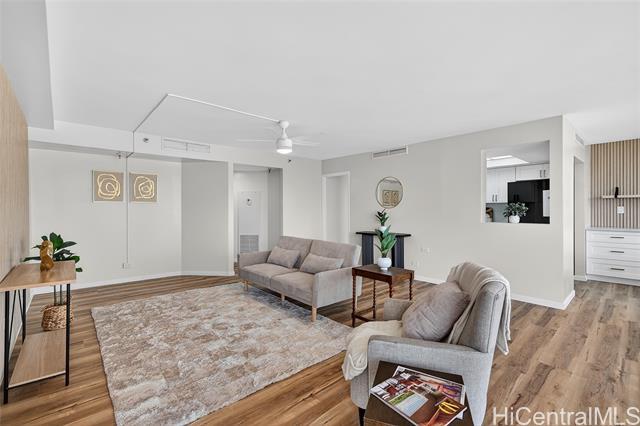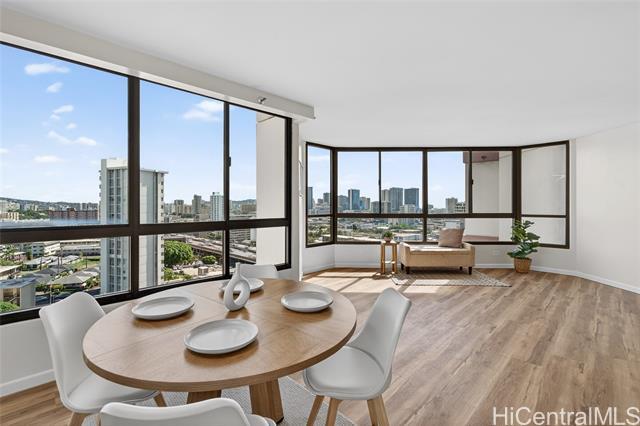 Beautiful, newly renovated, and remodeled high-floor residence with stunning 180-degree views and an exceptional floor plan. This bright and spacious unit features modern finishes throughout and is designed to maximize light, view, and comfort. Enjoy two (2) covered parking stalls plus extra storage, a rare and valuable combination. The building offers resort-style amenities including a swimming pool, jacuzzi, sauna, fully equipped fitness center, putting green, and more - perfect for both relaxation and active living. Centrally located with easy access to Downtown Honolulu, Kaka'ako, Waikiki, shopping, dining, beaches, and freeway access. A fantastic opportunity to own a move-in ready, high-floor unit in one of Honolulu's most convenient locations.
