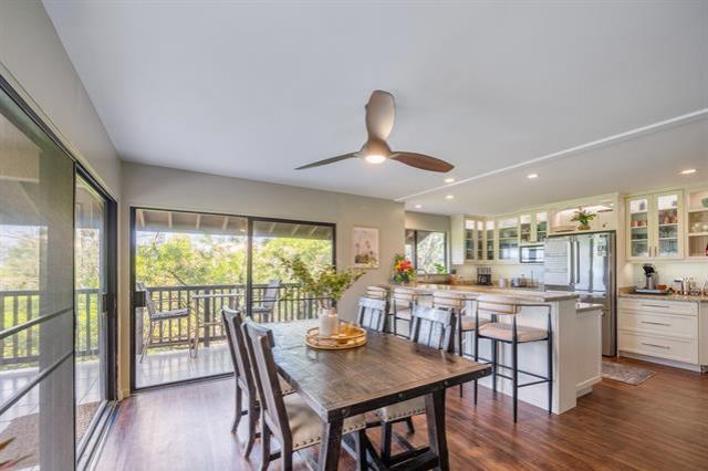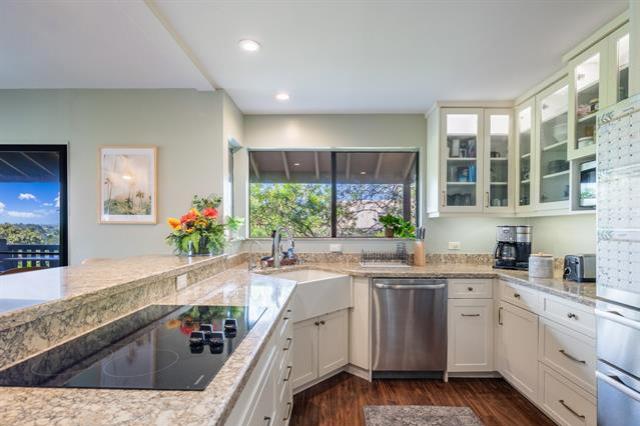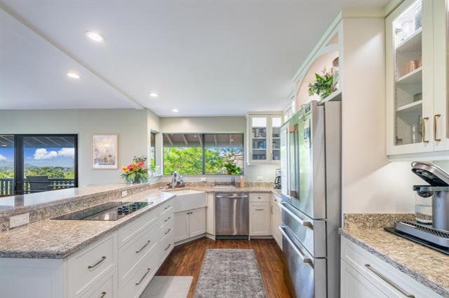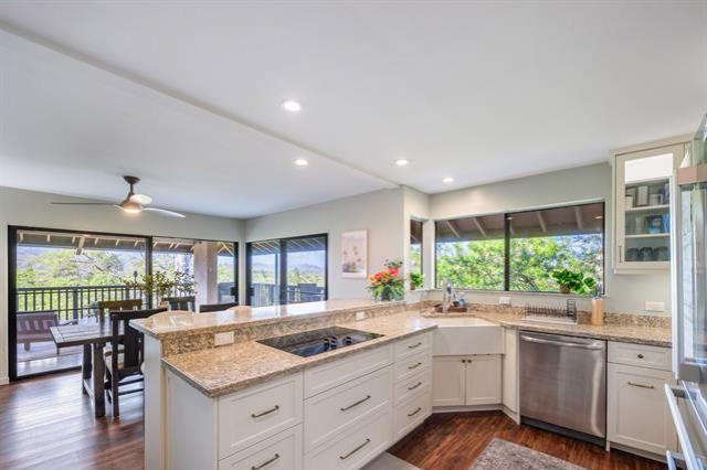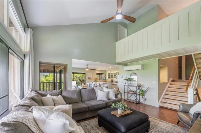 Enjoy the best of island living in this spacious 2,000 sq ft home, ideally located near scenic hiking trails, the Mid-Pacific Golf Course, and world-famous Kailua Beach. Start your mornings on the covered balcony overlooking the golf course, where cooling ocean breezes keep the home comfortable year-round. The fully remodeled kitchen is a standout, featuring a large pantry, double oven, and thoughtful upgrades designed for the home chef. The private primary suite occupies the top floor and includes split-system air conditioning, a beautifully remodeled en-suite bath, a walk-in closet, and a private balcony for quiet retreats. Two additional bedrooms on the lower level also offer split-system air conditioning and balcony access. A dedicated laundry room, ample storage, and an enclosed garage complete the home. Enjoy afternoons on nearby trails or the fairways, then unwind with sunset walks to local shops and restaurants. With Safeway and popular dining just a short walk away, this home perfectly blends comfort, convenience, and the Kailua lifestyle.