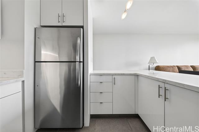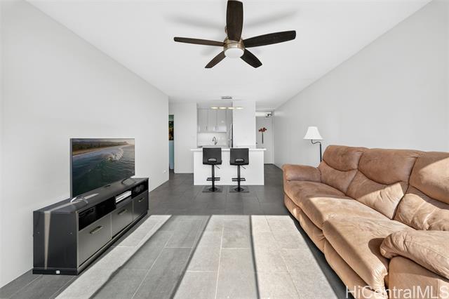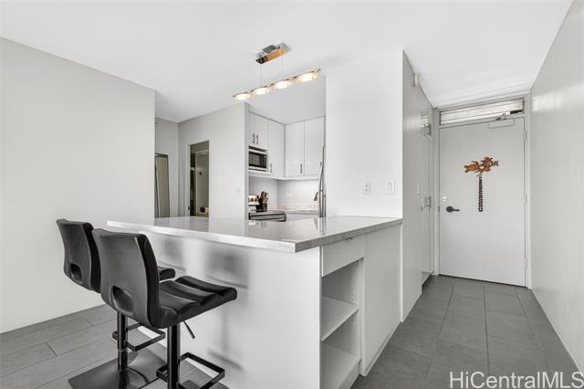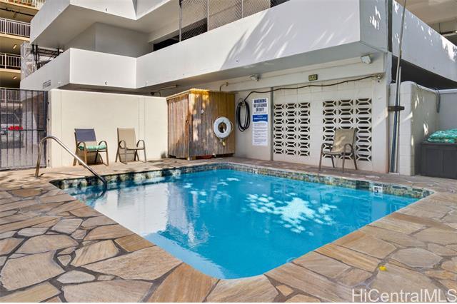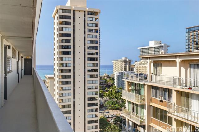 Beautifully renovated, pet-friendly penthouse unit with sweeping canal and golf course views, offering a relaxed island lifestyle in the heart of Waikiki. Located in a secured building with private penthouse-level access, this home provides added privacy and everyday convenience. Enjoy expansive views that capture sunrise mornings and evening city lights. The upgraded kitchen features an island, quartz countertops, and updated cabinetry, ideal for entertaining or casual meals at home. The bathroom has been fully renovated, with tile flooring throughout and a custom bedroom closet system. Additional highlights include an in-unit washer and dryer, private trash chute, and covered parking. Centrally located near beaches, shopping, dining, golf, and marina access, this penthouse offers the ability to enjoy a walkable, low-maintenance lifestyle while remaining connected to everything Waikiki has to offer. VA loan assumption option available with a 4.125% interest rate and low assumption gap for VA eligible buyers.
