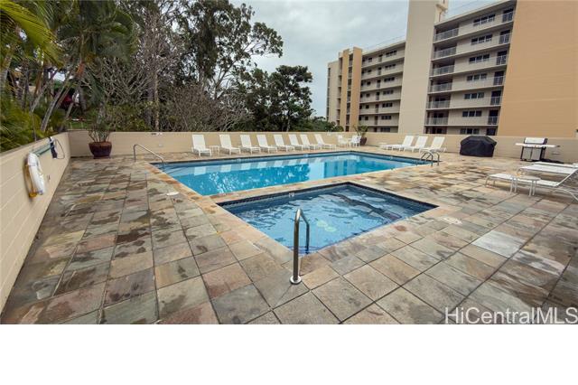 Rarely available corner unit featuring a versatile den area, perfect for a home office, reading nook, or guest space. Located in a highly desirable, secluded, gated community complex with all you need amenities for peaceful & healthy living! This 10-floor condo boasts a spacious living room with lanai, 2 bedrooms & 2 bathrooms making it perfect for first-time home buyers or investors. The bright & airy living room offers sweeping views of the golf course, Pearl Harbor, & partial ocean view from its lanai that is ideal for sipping your coffee while enjoying the island setting. The primary suite includes two closets & a remodeled shower tab. Updated kitchen, washer/dryer in unit, & one assigned open parking. Located in upper Aiea near the Pearlridge Shopping Center, with numerous dining and entertainment options, this community offers a peaceful retreat away from the busy city life. You'll enjoy a perfect balance of comfort, convenience and value. Pet friendly! The Colonnade features heated pool & whirlpool, tennis & pickleball courts, exercise rooms & saunas, BBQ grills & recreation areas, EV charging stations, basketball court, game room, & more! MUST SEE to appreciate it all!