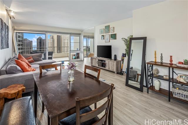 Come and experience the breathtaking views this corner penthouse offers! City, Ala Moana Beach Park, ocean, world famous surf breaks, lush green mountains, and much more visible from a very spacious lanai. This condo was renovated in 2019 and has been gently lived in since. Located in Waikiki bordering Ala Moana, enjoy the best of both worlds. While this condo does not offer AC, stop by at any time to experience natures breeze AC. Matterport available for virtual showing and prelisting home inspection available upon request.