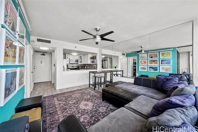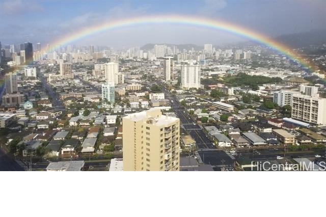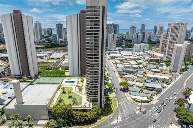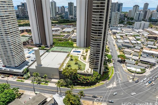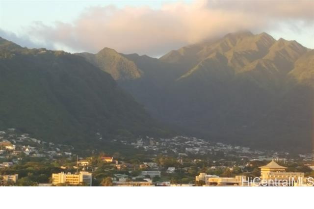 Rare opportunity to own a coveted high-floor 1BR/1BA residence that is well maintained and offers an abundance of natural light, as well as breathtaking unobstructed city and mountain vistas. The unit boasts an upgraded kitchen (new microwave and dishwasher), central air conditioning, high-speed fiber-optic internet, stacked washer and dryer, and a private lanai— perfect spot for enjoying your morning beverage, or to catch beautiful sunsets and enjoy watching the city lights in the evening. Ideally situated near the University of Hawai‘i, freeway access, premier shopping destinations, world-class beaches, Waikiki, and Ala Moana, the building’s prime location offers the ultimate in convenience, with a mini mart on the ground floor, ample guest parking, and secure garage entry to your assigned covered stall. The building also offers resort-style amenities: tennis courts, a pickle ball court, putting green, sparkling swimming pool, soothing whirlpool, sauna, and BBQ areas—all thoughtfully designed for your leisure and recreation. Building-wide waste pipe replacement is currently underway, with this unit’s upgrade already completed for your peace of mind.
