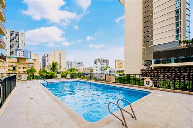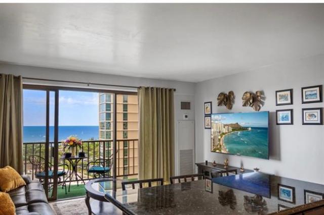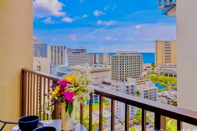 RARE HIGH-FLOOR OCEAN VIEW GEM WITH IN-UNIT WASHER/DRYER! Experience the ultimate Waikiki lifestyle in this stunning, move-in-ready sanctuary. Perched on a high floor, this preferred stack unit offers breathtaking, unobstructed ocean views from both the living room and the bedroom. This is a true turn-key opportunity, fully furnished with stylish furniture, appliances, kitchenware, and cutlery. Unlike most Waikiki condos, this unit features its own rare in-unit washer and dryer for maximum convenience. One assigned parking stall is included, and the building provides six guest parking stalls—a rare luxury in this area. Vacant and ready for its new owner!