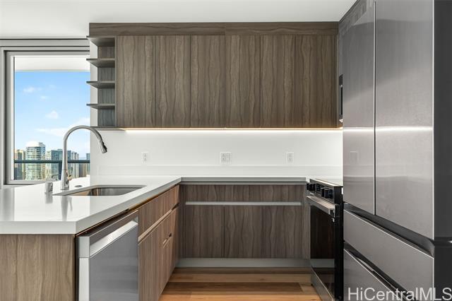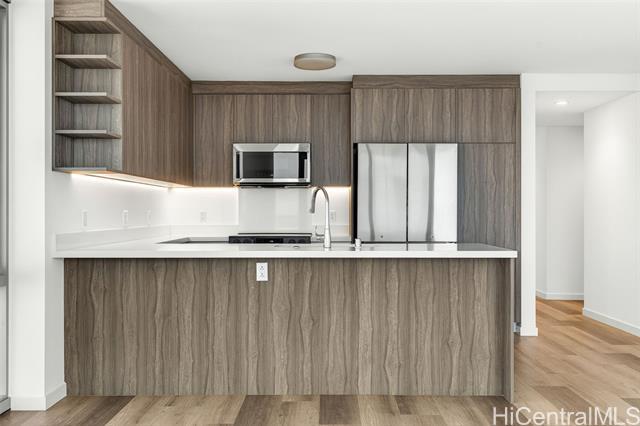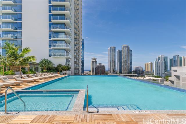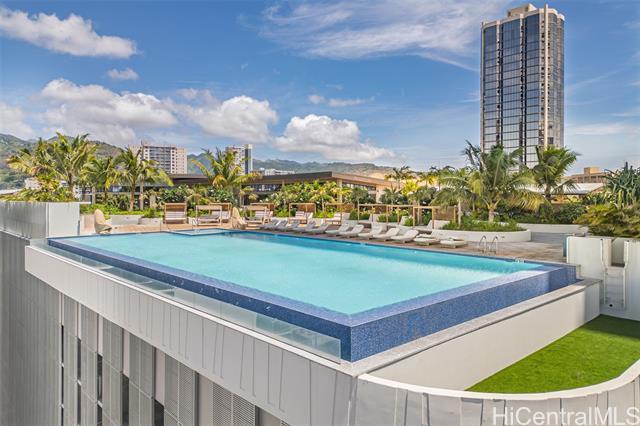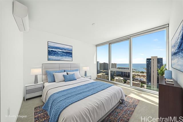 Welcome to this stunning three-bedroom corner residence at The Park on Keeaumoku, offering beautiful ocean views and abundant natural light throughout. This thoughtfully designed home features expansive floor-to-ceiling windows, maximizing both views and airflow, while the corner layout provides enhanced privacy and an open, airy feel. The modern open-concept floor plan is appointed with quartz countertops, luxury vinyl plank flooring in the living areas and kitchen, split AC in every room, and a private lanai—perfect for enjoying ocean and city vistas. The spacious three-bedroom layout offers flexibility for comfortable living, a home office, or guests. Residents enjoy resort-style amenities, including an infinity pool and spa, BBQ pavilions, movie theater, fitness center, yoga studio, sauna, and elegant clubrooms. Ideally located and closed to Ala Moana Shopping Center, dining, and entertainment, this home offers the perfect blend of modern convenience and island lifestyle