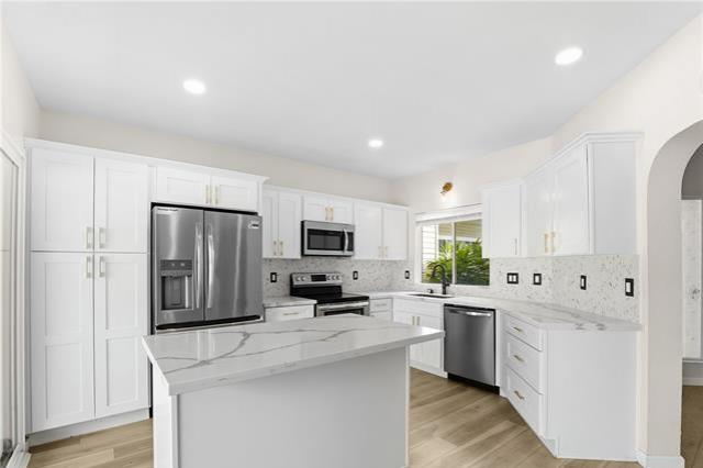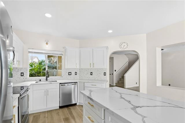 Welcome to this beautifully and Extensively Remodeled 3-bedroom, 3-full-bath home with a large 2-car garage located in the desirable Arbors gated community. This move-in-ready home with a ground-floor bedroom features 22 OWNED PV solar panels, offering exceptional energy efficiency and long-term savings. The chef’s kitchen shines with brand-new high-end appliances and modern finishes, with fresh interior paint and new sliding patio doors that create a bright, welcoming feel throughout. Over $100K in upgrades include new split A/C systems, LVP throughout, a new large-capacity GE hybrid heat pump hot water tank, new toilets, and an oversized 2-car garage, all situated close to the community pool. Step outside to enjoy the professionally landscaped yard, perfect for relaxing or entertaining. This home has been thoughtfully updated from top to bottom. Enjoy the resort-style amenities, including a BBQ area, clubhouse, pool, and amazing community. Perfectly situated close to beaches, expressway, shops, and restaurants, this gated community and home is a must-see and must-have.