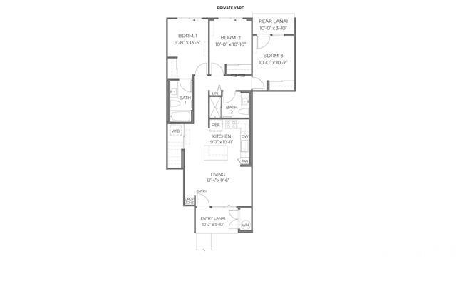 This single ground level 3-bedroom, 2 bath condominium flat consists of 1,004 square feet of net living area. Step in from the covered entry lanai and enter the open concept living room and kitchen. Past the kitchen is the primary bedroom which includes a closet and ensuite bathroom with a vanity sink and shower and bathtub combination. Next door, the secondary and third bedrooms have closets with mirrored sliding doors. Across the hall, the secondary bathroom includes a vanity sink and a full shower. Split air conditioning and modern appliances including a range/oven, micro-hood, dishwasher, refrigerator, and washer/dryer allow for ease of living.
