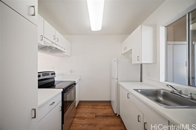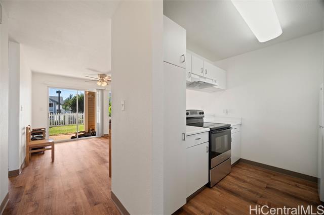Welcome to Halelani Village at Puhi, where comfort meets convenience in this ground-floor townhouse featuring 2 bedrooms, 1 bathroom, and 2 parking stalls. This highly desirable unit offers a large private yard with beautiful mountain views, perfect for outdoor dining, gardening, or relaxing in your own space. Recently refreshed, the home features new interior paint, new luxury vinyl plank flooring, and new light fixtures, creating a bright and modern feel throughout. The kitchen is equipped with a new stainless steel range, and a new window A/C unit in the bedroom adds comfort year-round. Ideally located in Lihue near shopping, dining, and everyday conveniences and the airport, this move-in-ready home offers an excellent opportunity for both homeowners and investors seeking value and lifestyle in a well-maintained community.