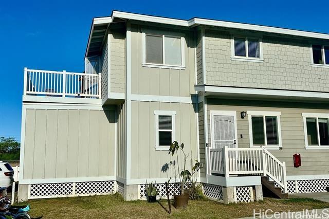 Large 4BR 3BA ideal for families or hosting guests. Includes 1 Bedroom & 1 Full Bath on First Floor, perfect for guests, room mates, or multi-generational living. Discover your dream home just one block from the beach and located near the elementary school. This spacious corner end unit offers the perfect blend of comfort, convenience, and stunning mountain & ocean views. Located in a cul-de-sac at the end of the property. Wake up to breathtaking views of Waianae Valley and the Pacific Ocean from your bedroom deck. Enjoy a back courtyard and deck for low maintenance yet perfect for outdoor relaxation. On days when you don't want to get sandy from the beach, enjoy the convenience of the pool and hot tub on property. Ask us about a rare opportunity to secure favorable financing with VA assumable loan at 6.25%.