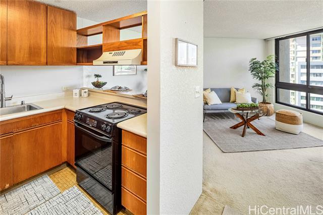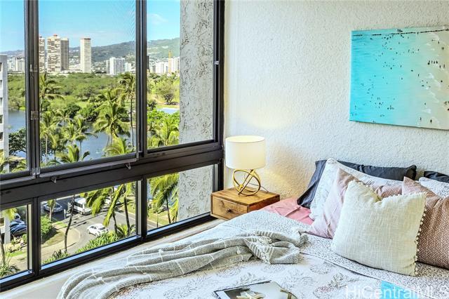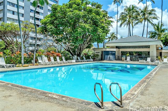 FULLY INSURED FOR HURRICANE COVERAGE! Resort looking residential condo, it is peace and quiet location in the heart of Waikiki. Just blocks from iconic beaches this resort-style living tropical grounds with beautiful koi fish swimming through waterways along walking paths. Stroll over a bridge with the fish below to head to the swimming pool, spa, cabana and BBQ areas. Get in your Cardio at the tennis courts or plant a garden in the upper patio area. This unit#1014, 1 bedroom 1 bathroom unit in the King Tower(Tower 2)of Liliuokalani Gardens has many of storage space in the unit. There is secured surfboard and bike storage. Coin Machine or a mobile pay app make doing laundry on the main floor a breeze. 24-hour security and Resident Manager are a benefit of living in this community. Secured garage parking stall is assigned at $300 per year. There are lot of guest parking stalls inside the secured garage structure. Close to beach, shopping, restaurants and much more!! Don't miss this opportunity!
