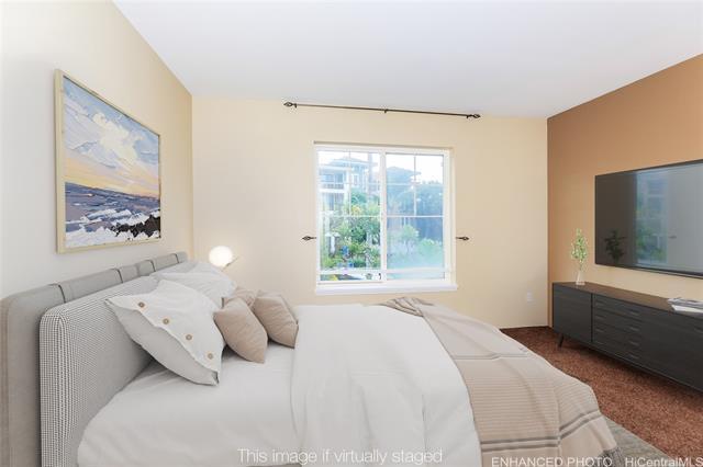 Beautiful 3 bedroom 2 full bath at the lovely Hawaii Kai, Colony at the Peninsula. This beautifully maintained 3 bedroom offers the swimming pool and beautiful Mountain Views. As Building 6 is away from the road, unlike Building 8 and other buildings, road noise is not really noticeable at all. 2 parking stalls (tandem) and really nicely placed, right out the elevator lobby door. Very short walk from the stalls to the door. Freshly painted as well as the carpets shampooed. Only one tenant, the entire time the owners owned the property. Great amenities including a gym and 2 swimming pools. Lots of walking spaces and grassy areas for outdoor family fun, and walking opportunities. Guest parking and more! Come see this wonderful property. Please use Old Republic Kahala, Team Jane Iwata. Seller will be executing a 1031 Exchange with no expense to the Buyer.