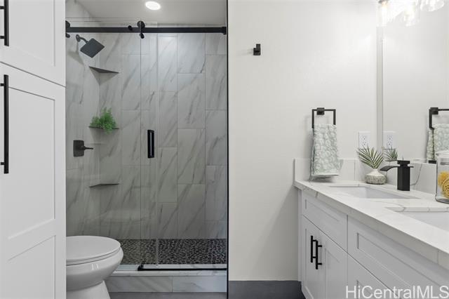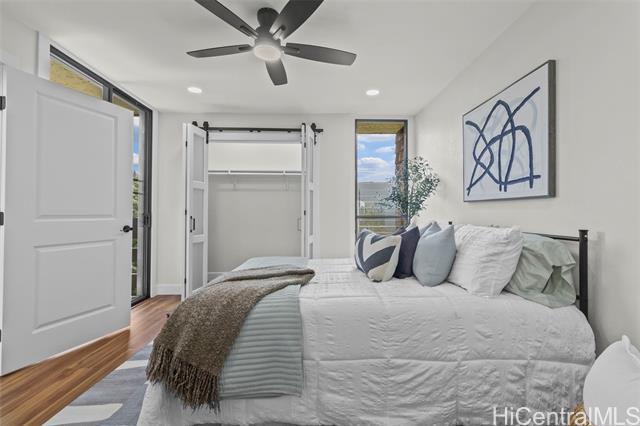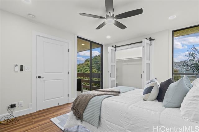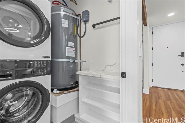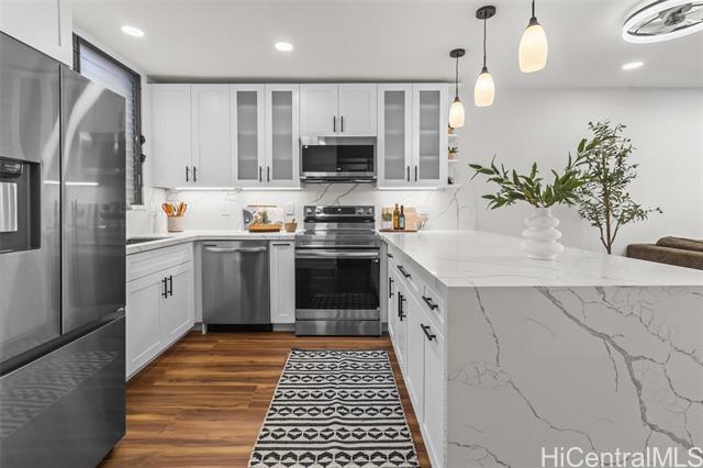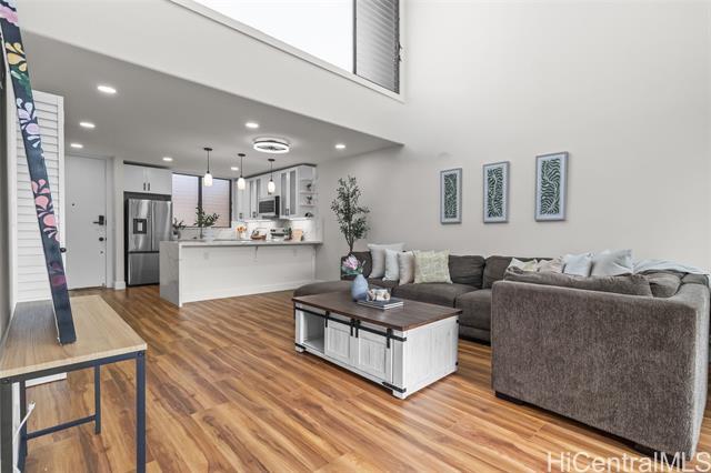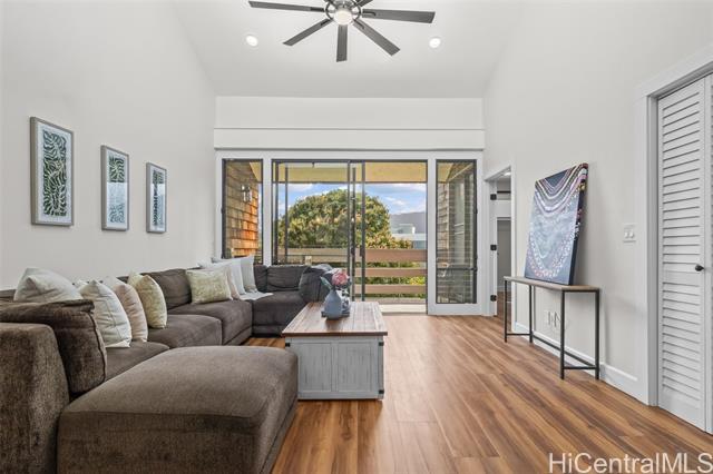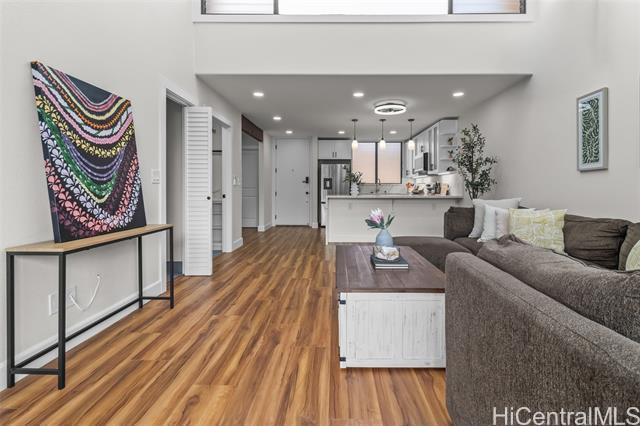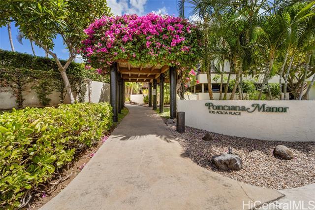 Step into refined luxury at this meticulously remodeled 2bed 2full bath Poinciana Manor unit in Kailua. Positioned on the fourth floor with high vaulted ceilings, this is truly one of the finest remodels you will experience. From custom cabinetry and smart kitchen appliances to spa-inspired baths, every detail speaks of thoughtful craft and intentional design with no detail overlooked. The luxury vinyl koa hybrid flooring elevates each step. This condo lives like a single family home with a full laundry/utility room, and extra closets (custom designed), yet still enjoys the convenience of condo living. In a great, private corner location overlooking nature, it’s just a short distance to beaches, restaurants, and amenities. The building boasts a pool and lovely garden areas. Complete with two full-size parking stalls and a storage unit, this is more than a home—it’s your personal retreat. Unmatched anywhere else on the Windward market, this exceptionally remodeled residence is rare opportunity reserved for the most discerning buyer seeking the definition of exceptional style, charm, and location.