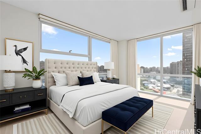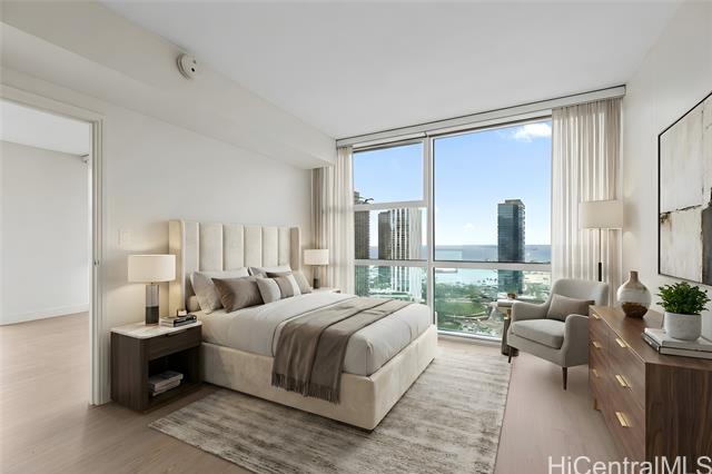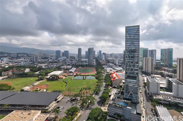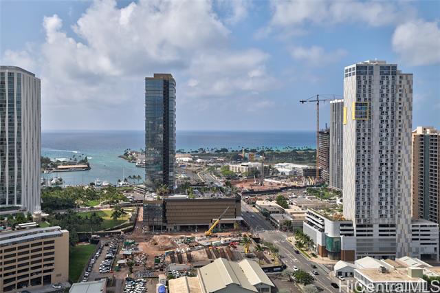 Indulge in refined island living in this premier corner residence ideally situated across from the iconic Neal S. Blaisdell Center. Perfectly positioned in the heart of the city, this sophisticated 2-bedroom, 2-bath home offers the ultimate blend of prestige, comfort, and convenience. Designed to capture breathtaking panoramic ocean and mountain views, this expansive corner unit is filled with natural light and refreshing cross-breezes. The thoughtfully designed layout offers both privacy and elegance, ideal for elevated everyday living or stylish entertaining. A rare offering in urban Honolulu, this residence includes three parking stalls and two generously sized storage rooms, providing exceptional flexibility and convenience. Residents enjoy resort-inspired amenities including a sparkling pool, fully equipped fitness center, and beautifully appointed party and gathering rooms — perfect for hosting memorable occasions. This is luxury city living at its finest — where location, views, and exclusivity come together in one extraordinary opportunity.