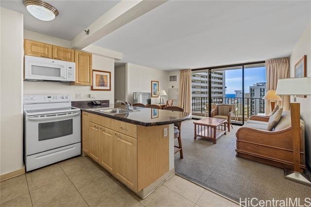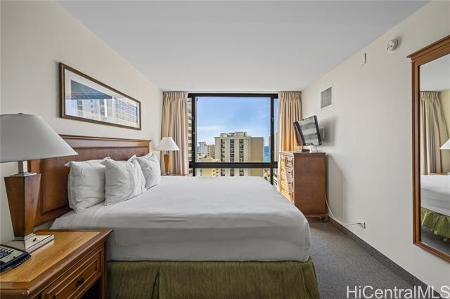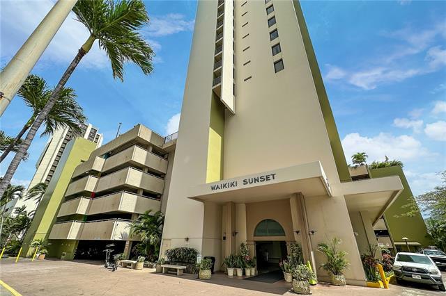 Discover the perfect opportunity to own a highly sought-after 1-bedroom unit in the popular Waikiki Sunset! This fully furnished hotel unit boasts the largest 1-bedroom floor plan, featuring a lanai and an open living/kitchen layout. Enjoy partial ocean and Diamond Head views! The unit is part of the hotel rental program with Aston Waikiki Sunset and has a NUC (Non-Conforming Use Certificate). Recent hotel upgrades in 2019 include new carpet, fresh paint, and the removal of popcorn ceilings, ensuring a modern and comfortable living space. The building offers great amenities such as BBQ facilities, a pool, community laundry, an exercise room, and 24-hour security. Located in a prime area, you'll be close to the world-famous Waikiki Beach, Kapiolani Park, the zoo, restaurants, shopping, and much more.