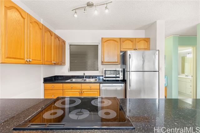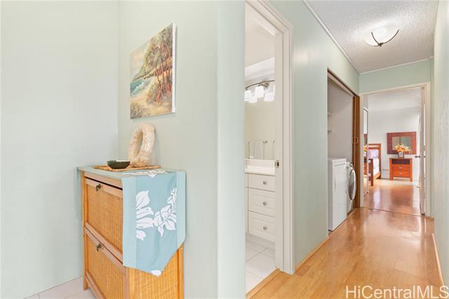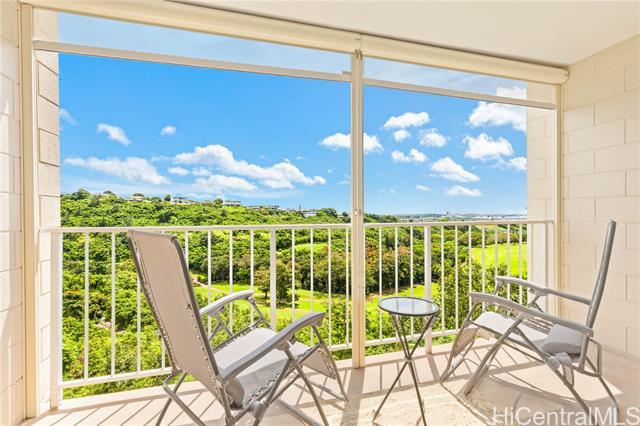 Wake up to stunning sunrise colors over the mountains and sweeping golf course views stretching toward Pearl Harbor. This tastefully remodeled 2-bedroom, 2-bath end unit offers privacy, comfort, and resort-style living. The open floorplan creates a bright, airy feel, and the updated kitchen features a brand-new range/oven. A separate bonus area provides flexible space for a home office or retreat. Relax on the lanai while listening to birds and watching golfers in a peaceful island setting. This gated community sits at the end of a cul-de-sac which is manned 24/7. The Colonnade boasts resort style amenities which include a heated pool, whirlpool, exercise room, sauna, recreation room with pool and ping pong, basketball area, putting green, indoor driving range, handball, tennis and pickleball courts, dog park, cornhole, and car wash area. Conveniently close to shopping and restaurants, this home offers the perfect blend of scenic beauty, recreation, and everyday convenience.