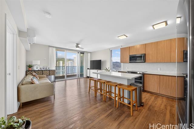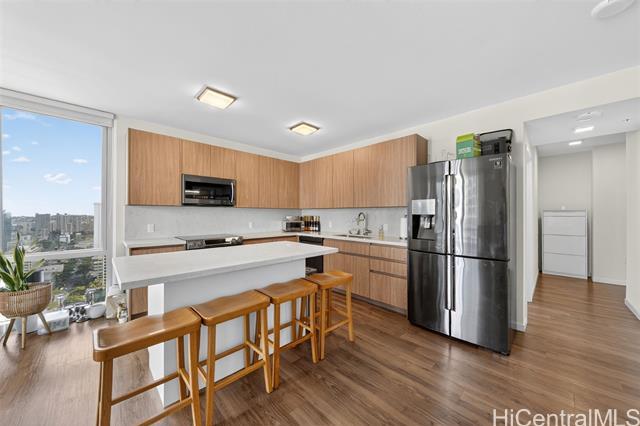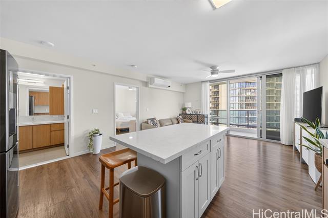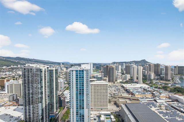 Floor 38. Corner unit. The cool side of the building. Diamond Head, mountain, city, and ocean views from multiple exposures. Wake up to sunrise every morning. Watch Friday night fireworks from Waikiki off your own wrap-around lanai. One of the most coveted positions in the building, without the afternoon heat. Inside: floor-to-ceiling windows, seller-upgraded premium PVC flooring throughout, and a kitchen island addition. Samsung appliances, quartz countertops, Toto toilets, and Grohe fixtures throughout. Two premium upgrades already done. Built for the buyer who doesn't compromise. Two parking stalls included. Resort-style amenities: heated pools, hot tub, fitness center, BBQ cabanas, children's play area, dog park, and recreation room. Steps from Ala Moana Center, Ward Village, and Honolulu's best dining and beaches. Positions like this don't wait for the right buyer.