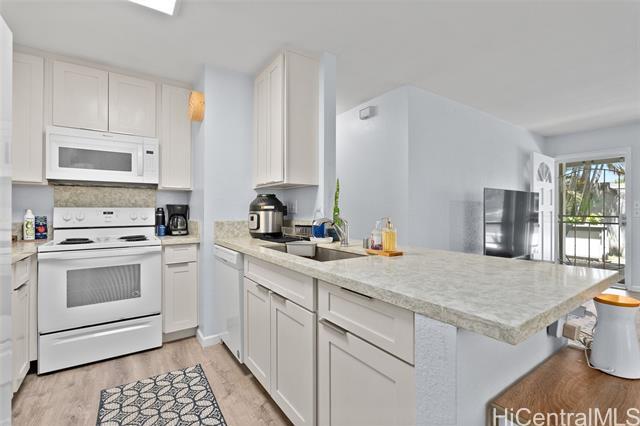 NEW LISTING!! Beautifully maintained ground-floor corner unit with 2 bdrm/2 baths, and 2 parking stalls at Crosspointe. This single-level end unit offers easy living in a private, peaceful and convenient gated community. Updates include a refreshed kitchen and bathrooms plus vinyl flooring throughout. Resort-style amenities include a swimming pool, fitness center, BBQ areas, and beach volleyball court, ideal for relaxing or entertaining. Conveniently located near the H 1 freeway entrance and across from Stadium Mall and Ice Palace for dining and entertainment. A wonderful opportunity for homeowners or investors seeking comfort, convenience, and community.