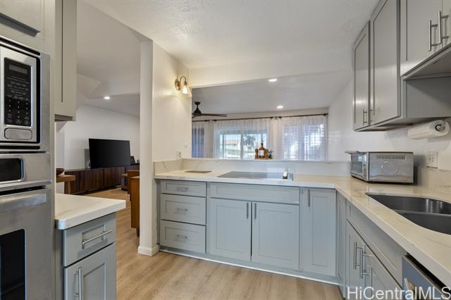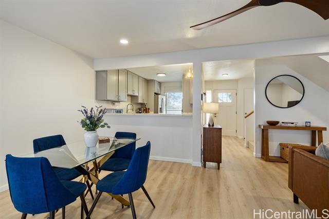 Va Assumable rate of 2.63%, 30 year fixed. Welcome to your excellently upgraded home in Palehua Hale. This 3-bedroom, 1.5-bath townhome has been thoughtfully modernized with a remodeled bathroom, new flooring, fresh interior paint, updated lighting fixtures, and custom window treatments creating a clean, cohesive, energizing feel throughout. The open-concept living and dining areas flow seamlessly, offering an ideal layout for both everyday living and easy entertaining. Step onto your spacious lanai to enjoy expansive ocean, mountain, and city light views, along with stunning sunset skies that make coming home truly special. Both front and back yards have been landscaped, offering inviting outdoor spaces with room to relax, garden, or gather with friends. Situated in the cooler elevations of Makakilo, this home provides a peaceful residential setting while remaining conveniently located near Kapolei’s growing amenities, schools, shopping, dining, and access to the H-1 freeway, making daily commutes to major employment centers across Oahu straightforward. Residents enjoy access to Kanehoa Recreation Center and the Palehua Community Association park.