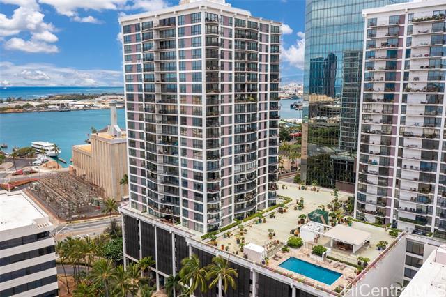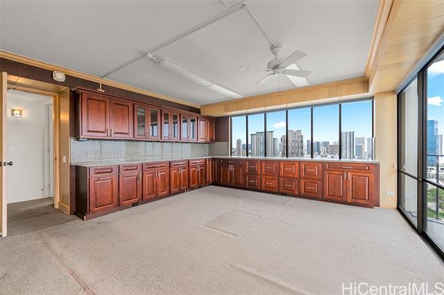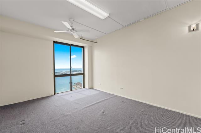 This unit is located on the Harbor-Diamond Head corner, with panoramic ocean and harbor views. The unit was used as an office and has many built-in cabinets for lots of storage. There is also additional storage outside the unit on the same floor. Price is reduced to reflect fixer-upper, "as-is" condition for the right buyer.