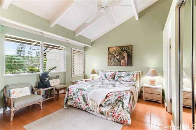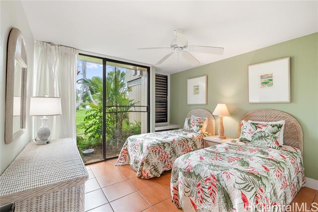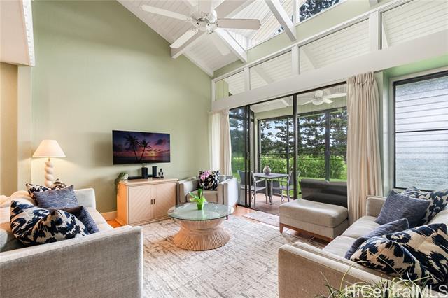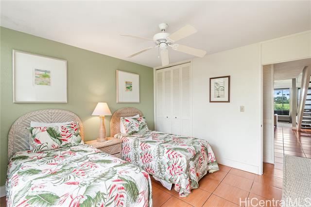 Highly desired ground floor unit and legal short-term rental in Kuilima Estates West at Turtle Bay on O?ahu’s North Shore. Ideally positioned on the 1st tee of the Fazio Course and just steps from the clubhouse, this 2-bedroom, 2-bath + loft home offers premier golf course frontage with beautiful views. The screened lanai enhances the indoor-outdoor island living. The well-maintained interior features tile flooring throughout, granite countertops, updated appliances, window A/C units in both bedrooms, ceiling fans, and a full-size washer and dryer. The flexible floor plan accommodates up to six guests with one king bed and four twin beds, offering versatility for personal use or short-term rental occupancy. Enjoy access to multiple swimming pools, BBQ areas, tennis, pickleball, and basketball courts, championship golf courses, and nearby beach access within the world-renowned Turtle Bay resort community. Whether used as a vacation retreat, second home, or legal short-term rental, this property offers the opportunity to experience the best of North Shore living.