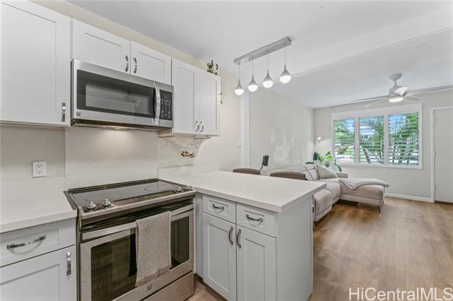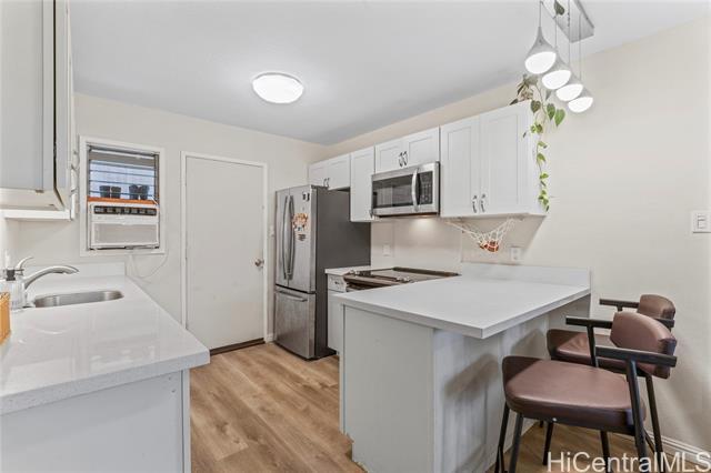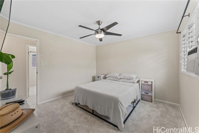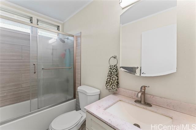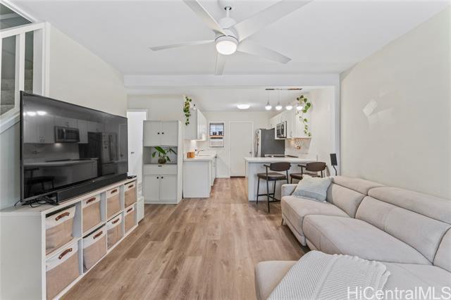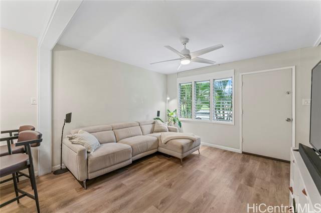 VA LOAN ASSUMPTION AT 2.6% with LOW GAP! Fully renovated in 2023, this home features a modern kitchen with self-closing cabinets, quartz countertops, and stainless steel appliances. Additional upgrades include vinyl plank flooring downstairs, newly installed carpet in 2026, refreshed bathrooms with a sliding tub door, fresh interior paint, LED lighting, and newly painted window trims (2026). The backyard is fully enclosed with a high fence and benefits from excellent natural airflow. This pet-friendly property includes bi-weekly yard maintenance. The layout provides added privacy with no neighbors above or below, along with a private street-facing entrance. The home also comes equipped with a washer and dryer, assigned parking, and plenty of street parking making it truly move-in ready. Ideally situated near elementary and Pearl City High School, Pearlridge Center, and major freeways. It is also just minutes from Pearl Harbor, Hickam, Camp Smith, and Fort Shafter.